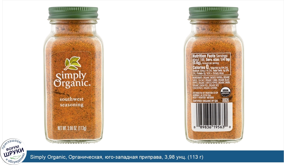 Друзья, если у вас есть отзыв/дополнение/комментарий/вопрос относительно Simply Organic, Органическая, юго-западная приправа, 3,98 унц. (113 г) - напишите его ответом в эту тему (это будет полезно всему сообществу в целом и вам в отдельности).