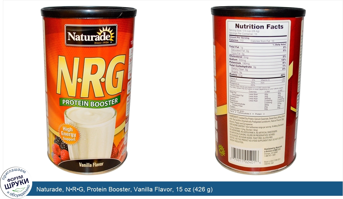 Naturade, N•R•G, Protein Booster, Vanilla Flavor, 15 oz (426 g)