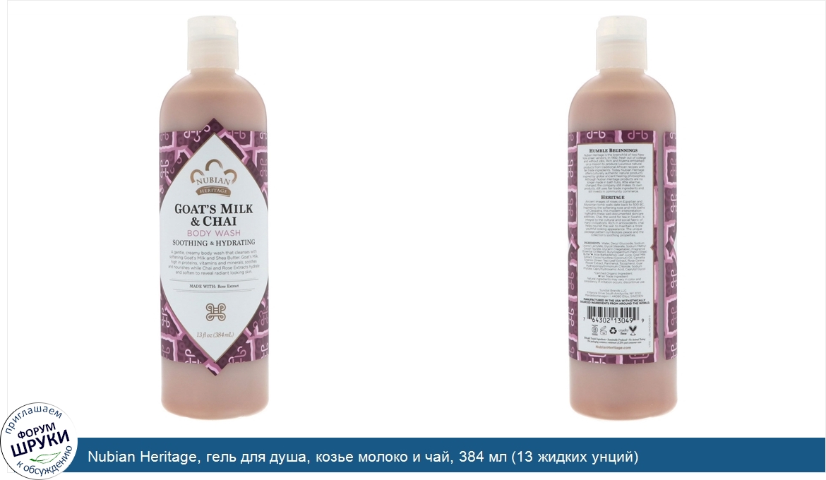 ru Nubian Heritage, гель для душа, козье молоко и чай, 384 мл (13 жидких унций)