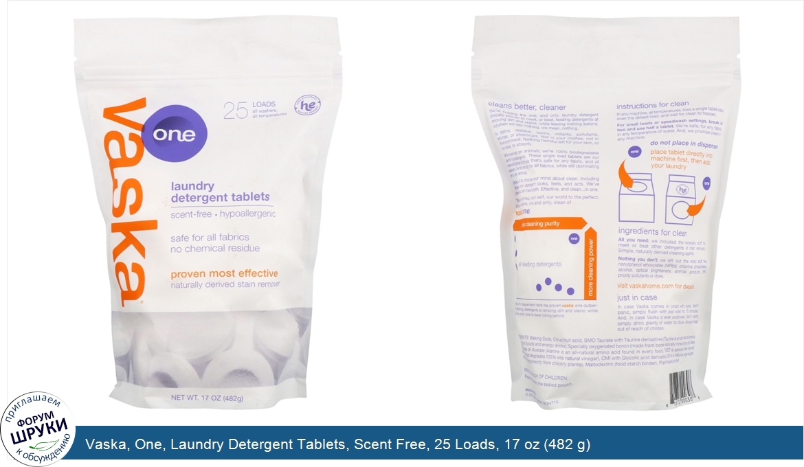 Друзья, если у вас есть отзыв/дополнение/комментарий/вопрос относительно Vaska, One, Laundry Detergent Tablets, Scent Free, 25 Loads, 17 oz (482 g) - напишите его ответом в эту тему (это будет полезно всему сообществу в целом и вам в отдельности).