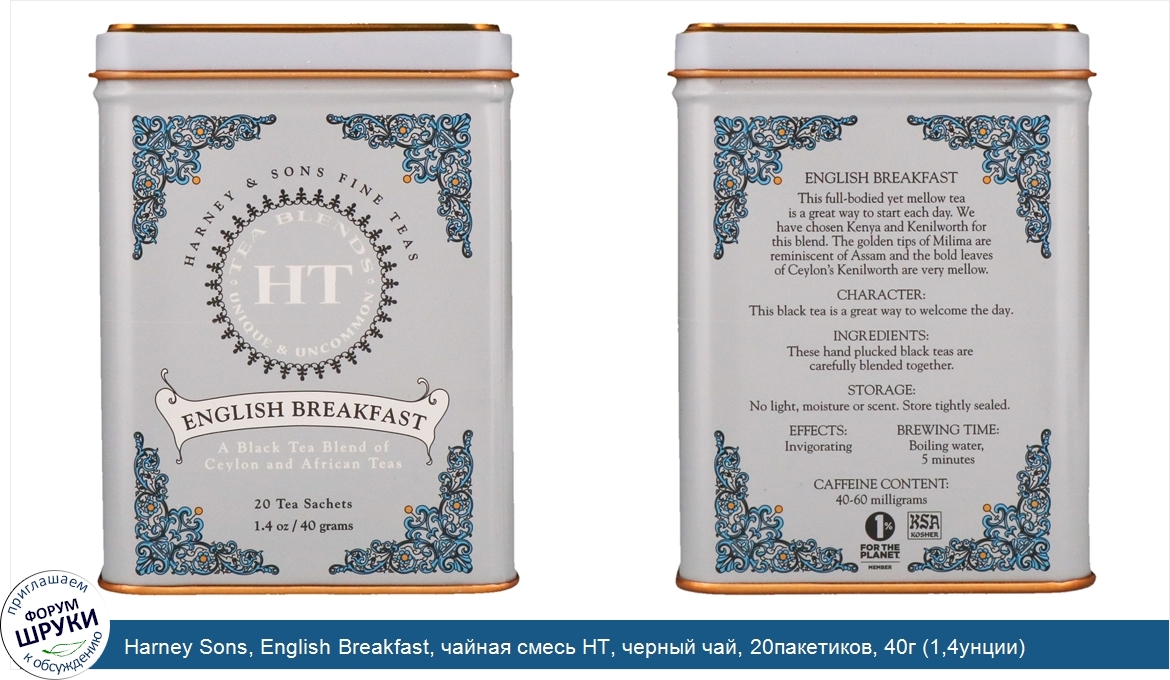 Друзья, если у вас есть отзыв/дополнение/комментарий/вопрос относительно Harney Sons, English Breakfast, чайная смесь HT, черный чай, 20пакетиков, 40г (1,4унции) - напишите его ответом в эту тему (это будет полезно всему сообществу в целом и вам в отдельности).