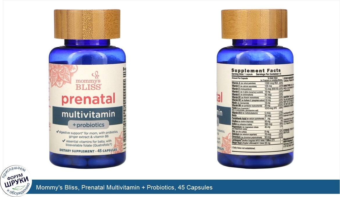 Друзья, если у вас есть отзыв/дополнение/комментарий/вопрос относительно Mommy's Bliss, Prenatal Multivitamin + Probiotics, 45 Capsules - напишите его ответом в эту тему (это будет полезно всему сообществу в целом и вам в отдельности).