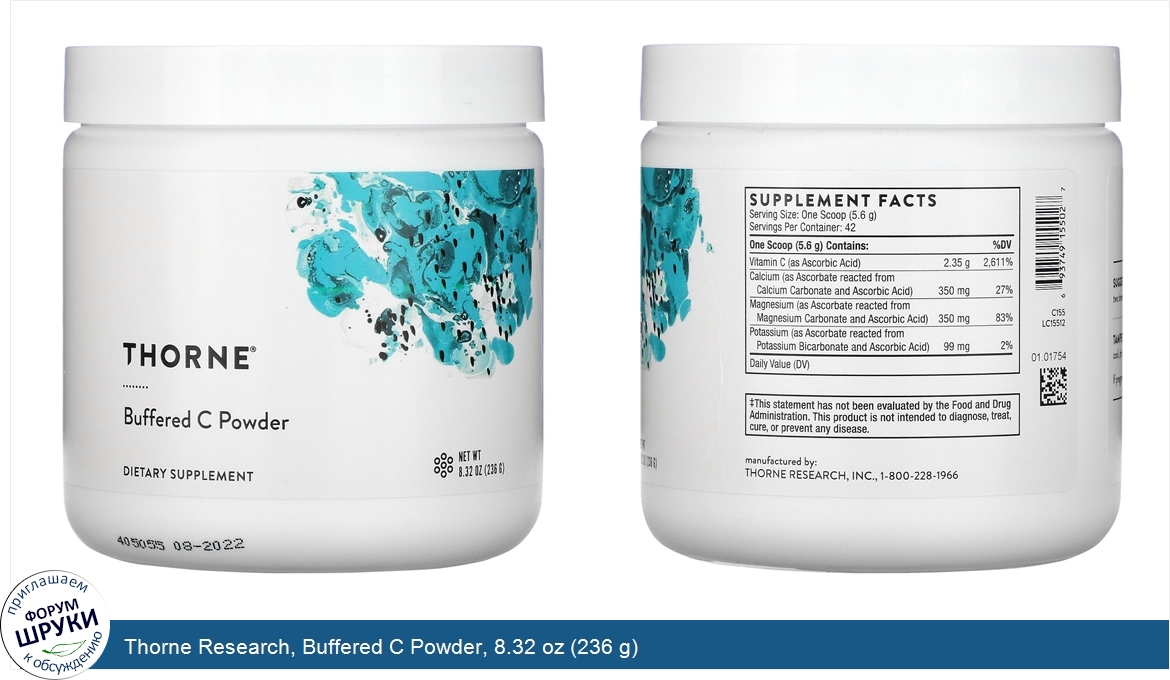 Друзья, если у вас есть отзыв/дополнение/комментарий/вопрос относительно Thorne Research, Buffered C Powder, 8.32 oz (236 g) - напишите его ответом в эту тему (это будет полезно всему сообществу в целом и вам в отдельности).