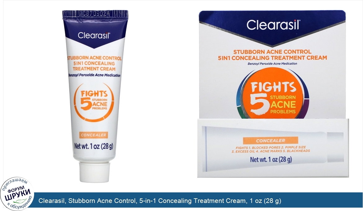 Clearasil, Stubborn Acne Control, 5-in-1 Concealing Treatment Cream, 1 oz (28 g)