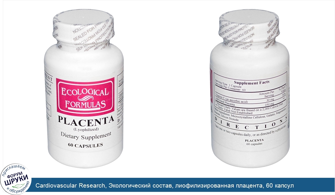 Cardiovascular Research, Экологический состав, лиофилизированная плацента, 60 капсул