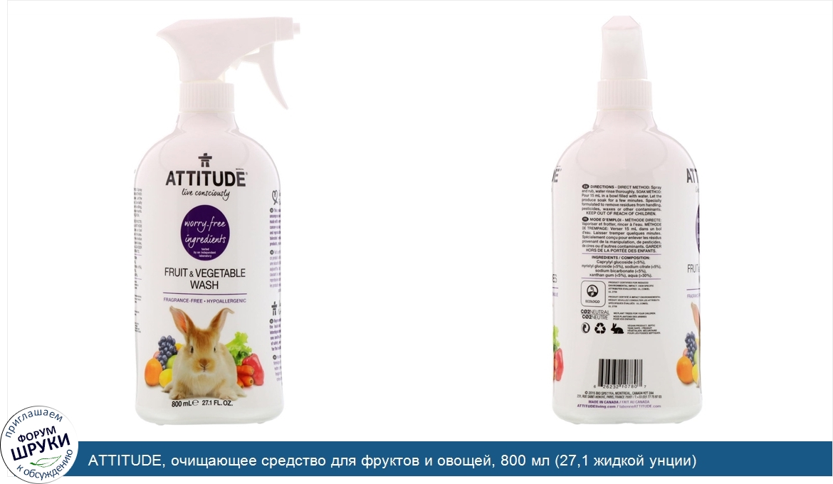 ru ATTITUDE, очищающее средство для фруктов и овощей, 800 мл (27,1 жидкой унции)