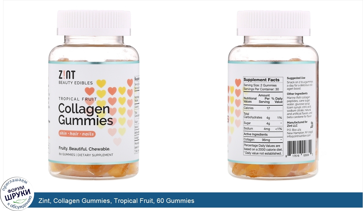 Друзья, если у вас есть отзыв/дополнение/комментарий/вопрос относительно Zint, Collagen Gummies, Tropical Fruit, 60 Gummies - напишите его ответом в эту тему (это будет полезно всему сообществу в целом и вам в отдельности).