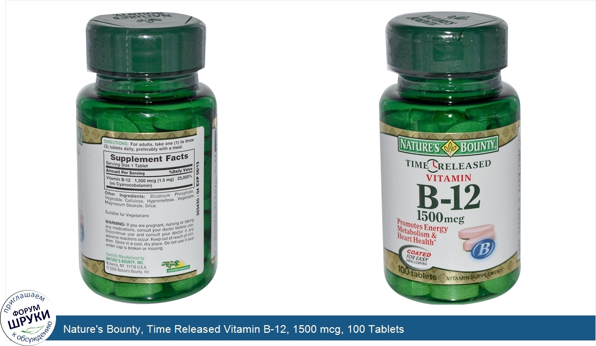 Nature's Bounty, Time Released Vitamin B-12, 1500 mcg, 100 Tablets