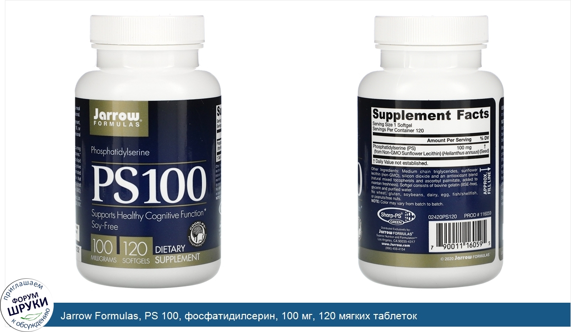 Друзья, если у вас есть отзыв/дополнение/комментарий/вопрос относительно Jarrow Formulas, PS 100, фосфатидилсерин, 100 мг, 120 мягких таблеток - напишите его ответом в эту тему (это будет полезно всему сообществу в целом и вам в отдельности).
