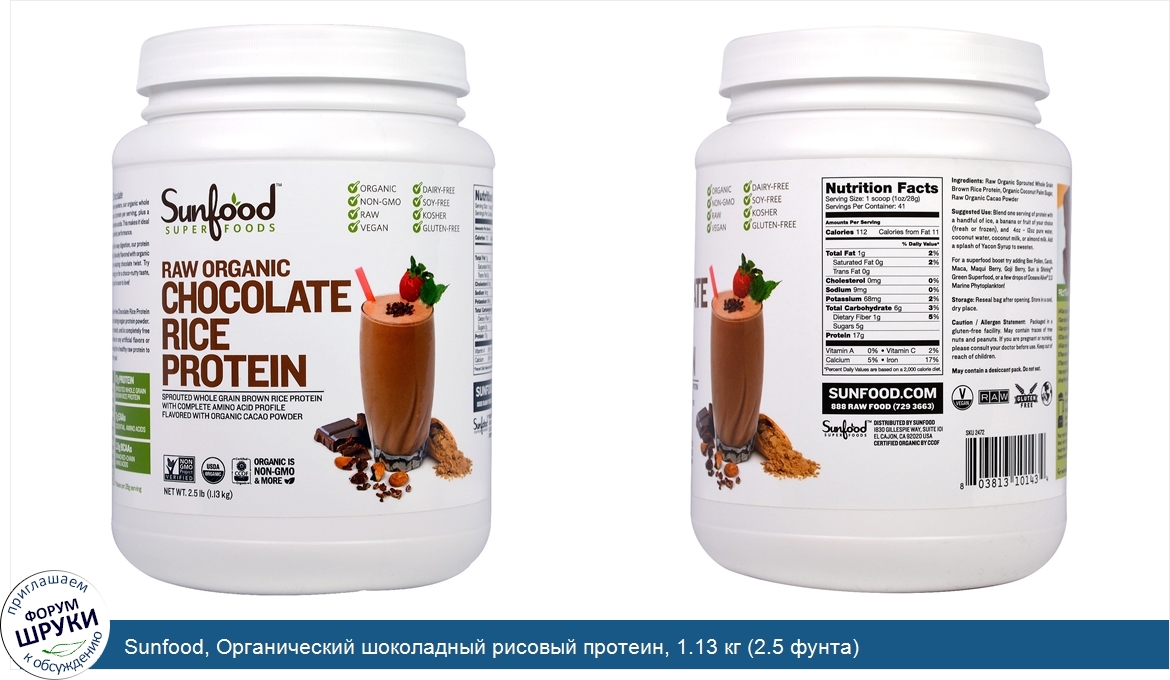 Друзья, если у вас есть отзыв/дополнение/комментарий/вопрос относительно Sunfood, Органический шоколадный рисовый протеин, 1.13 кг (2.5 фунта) - напишите его ответом в эту тему (это будет полезно всему сообществу в целом и вам в отдельности).