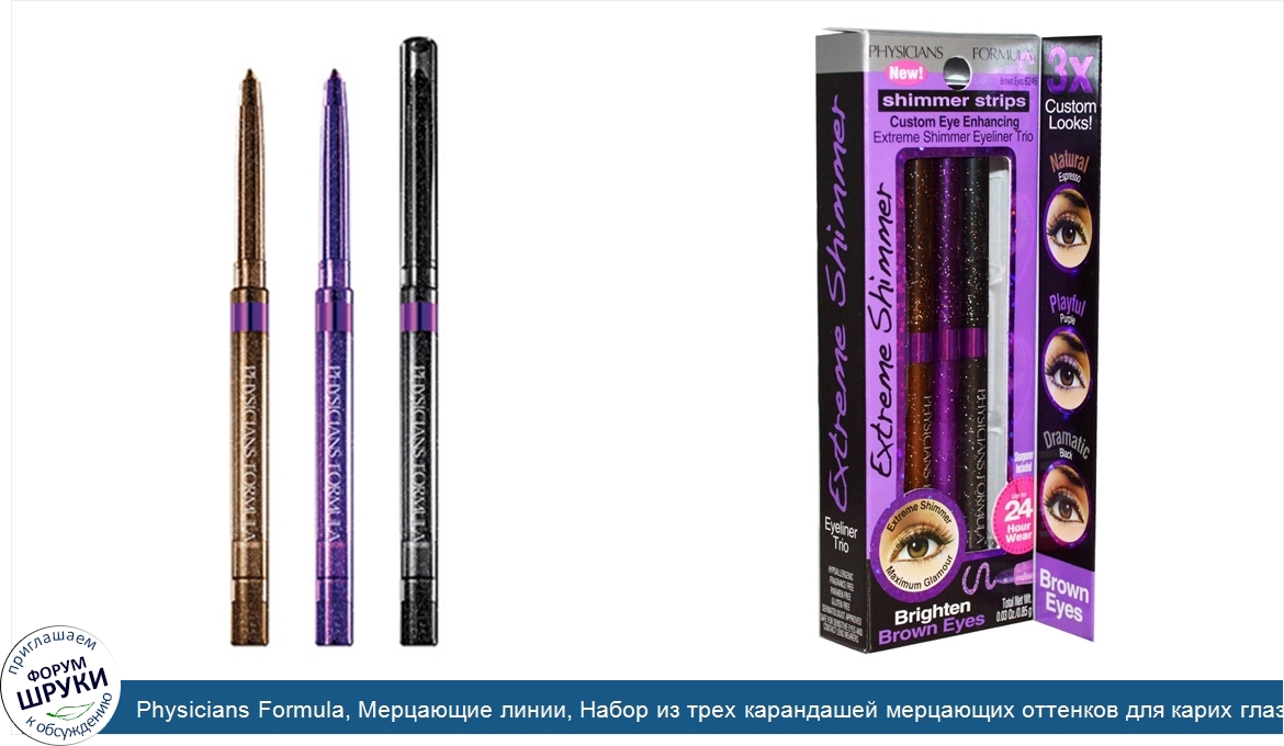 Друзья, если у вас есть отзыв/дополнение/комментарий/вопрос относительно Physicians Formula, Мерцающие линии, Набор из трех карандашей мерцающих оттенков для карих глаз, 0,03 унции (0,85 г) - напишите его ответом в эту тему (это будет полезно всему сообществу в целом и вам в отдельности).