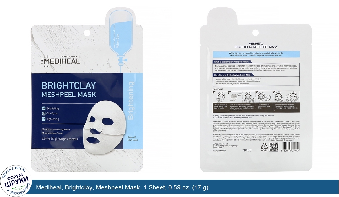 Друзья, если у вас есть отзыв/дополнение/комментарий/вопрос относительно Mediheal, Brightclay, Meshpeel Mask, 1 Sheet, 0.59 oz. (17 g) - напишите его ответом в эту тему (это будет полезно всему сообществу в целом и вам в отдельности).