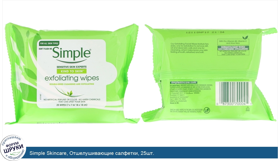 Друзья, если у вас есть отзыв/дополнение/комментарий/вопрос относительно Simple Skincare, Отшелушивающие салфетки, 25шт. - напишите его ответом в эту тему (это будет полезно всему сообществу в целом и вам в отдельности).