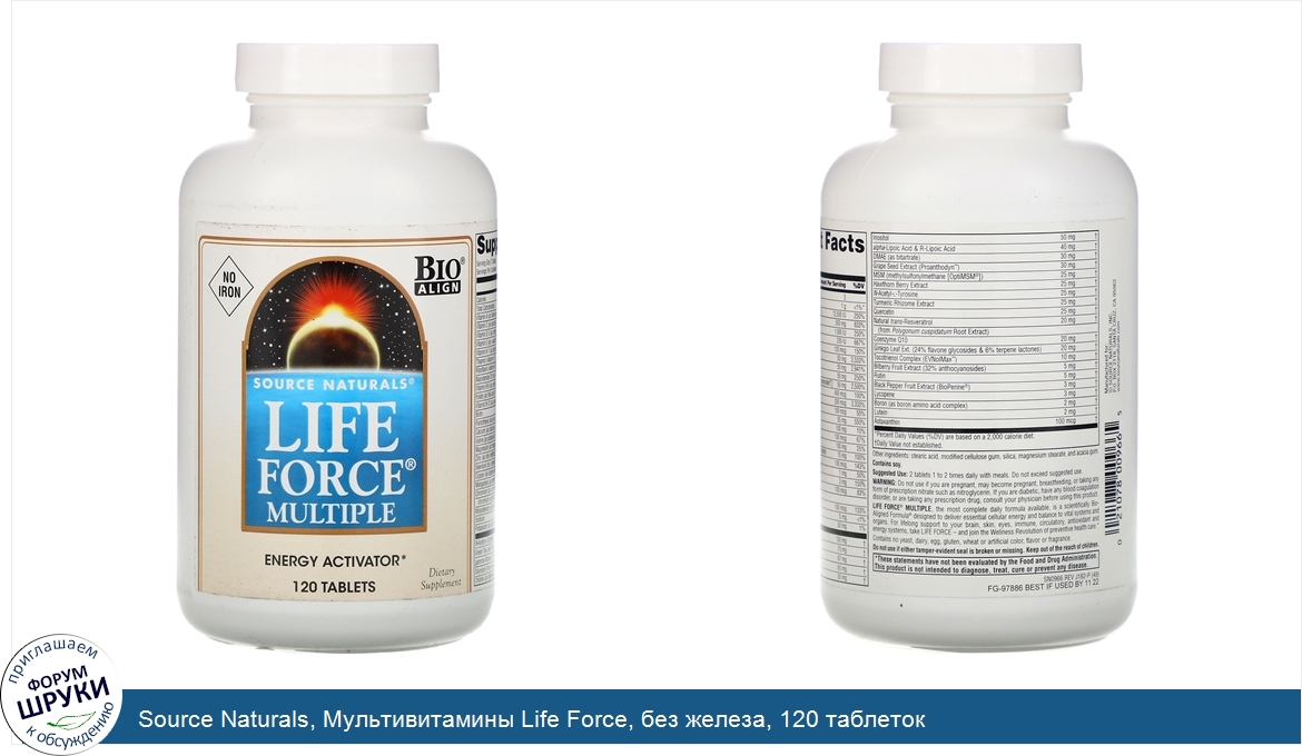 Друзья, если у вас есть отзыв/дополнение/комментарий/вопрос относительно Source Naturals, Мультивитамины Life Force, без железа, 120 таблеток - напишите его ответом в эту тему (это будет полезно всему сообществу в целом и вам в отдельности).