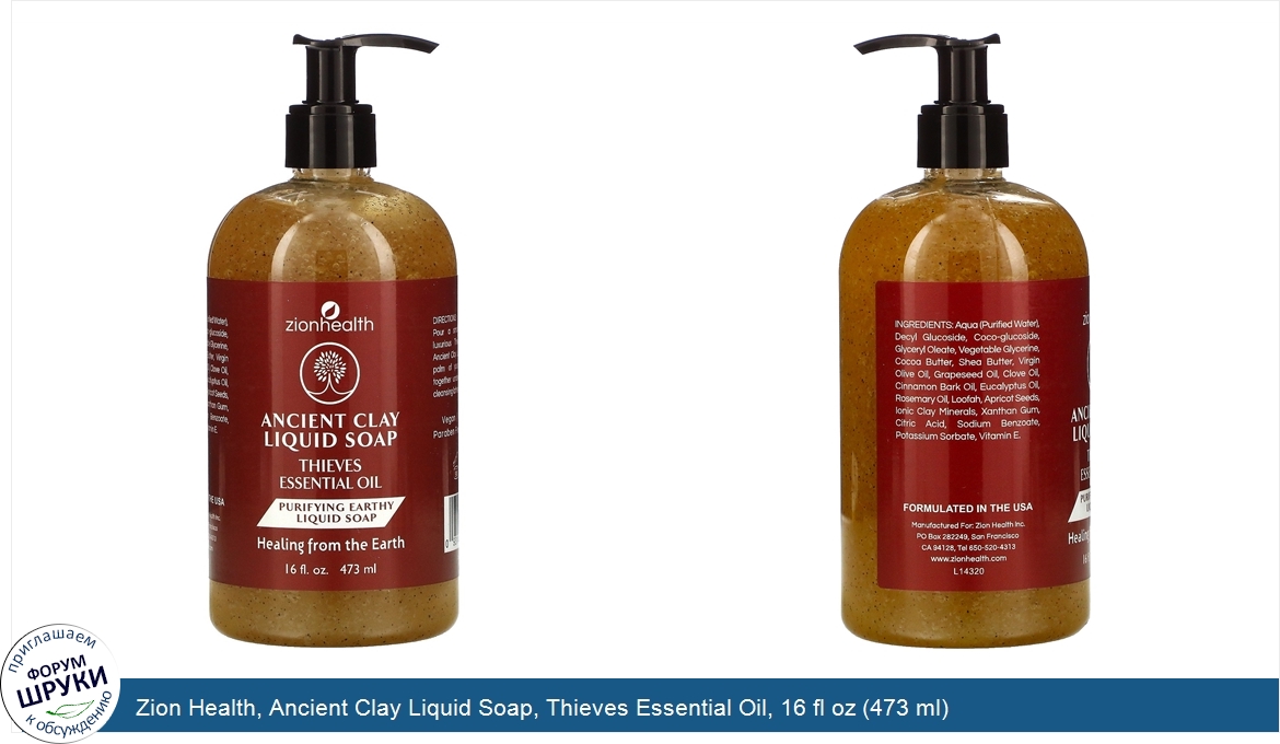 Zion Health, Ancient Clay Liquid Soap, Thieves Essential Oil, 16 fl oz (473 ml)