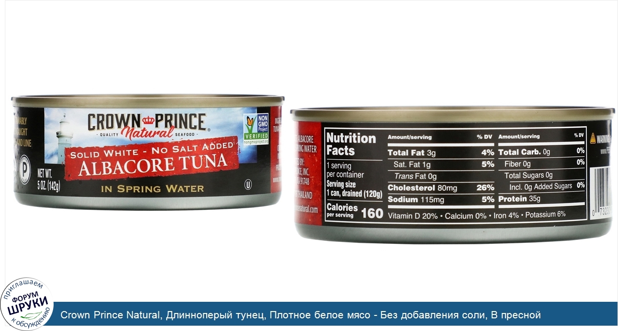 Друзья, если у вас есть отзыв/дополнение/комментарий/вопрос относительно Crown Prince Natural, Длинноперый тунец, Плотное белое мясо - Без добавления соли, В пресной воде, 5 унций (142 г) - напишите его ответом в эту тему (это будет полезно всему сообществу в целом и вам в отдельности).