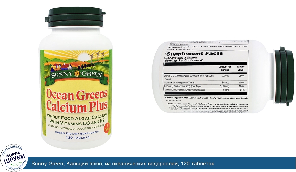 Друзья, если у вас есть отзыв/дополнение/комментарий/вопрос относительно Sunny Green, Kальций плюс, из океанических водорослей, 120 таблеток - напишите его ответом в эту тему (это будет полезно всему сообществу в целом и вам в отдельности).