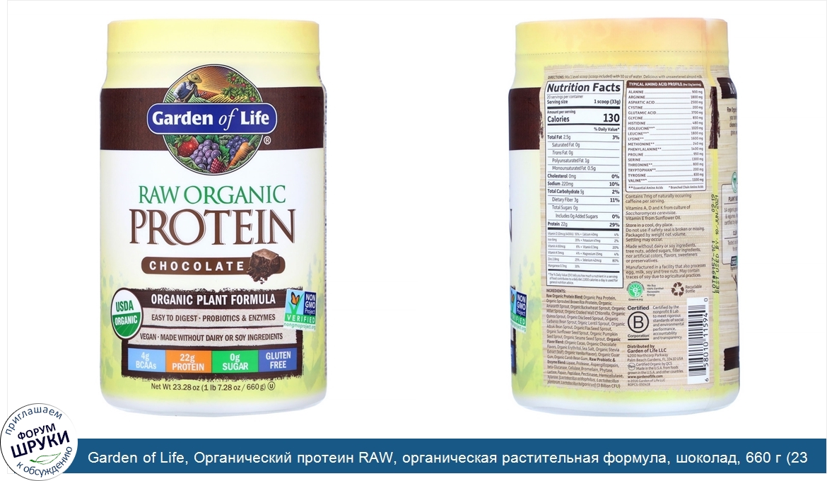 Друзья, если у вас есть отзыв/дополнение/комментарий/вопрос относительно Garden of Life, Органический протеин RAW, органическая растительная формула, шоколад, 660 г (23,28 унции) - напишите его ответом в эту тему (это будет полезно всему сообществу в целом и вам в отдельности).