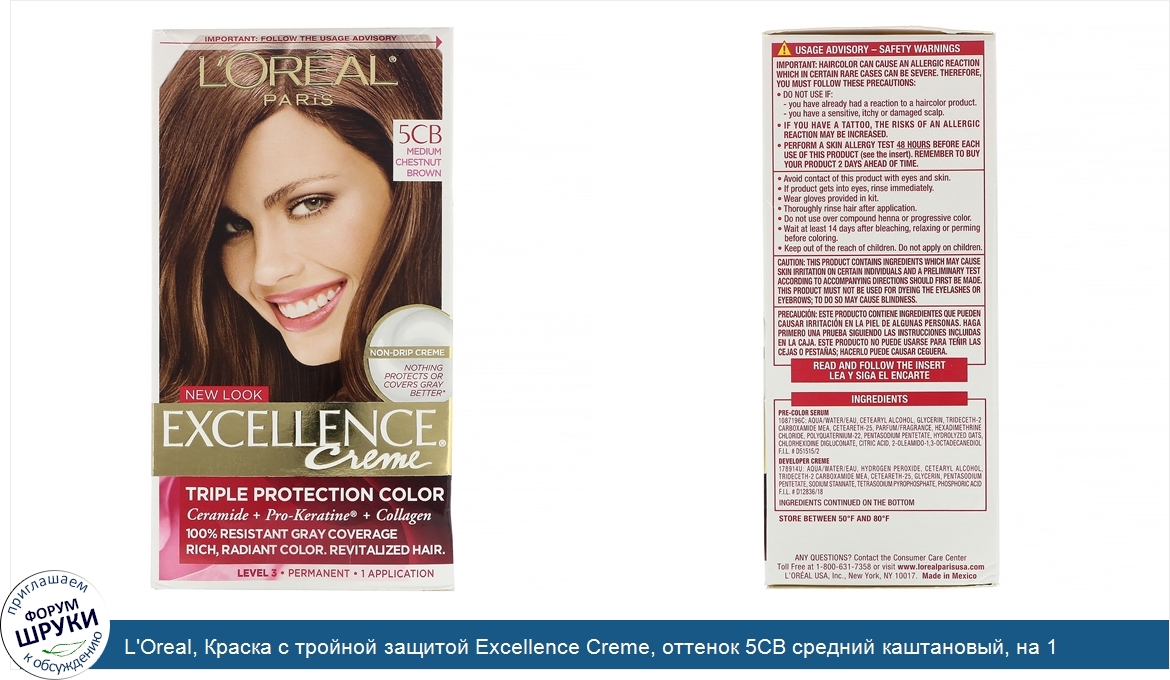 Друзья, если у вас есть отзыв/дополнение/комментарий/вопрос относительно L'Oreal, Краска с тройной защитой Excellence Creme, оттенок 5CB средний каштановый, на 1 применение - напишите его ответом в эту тему (это будет полезно всему сообществу в целом и вам в отдельности).