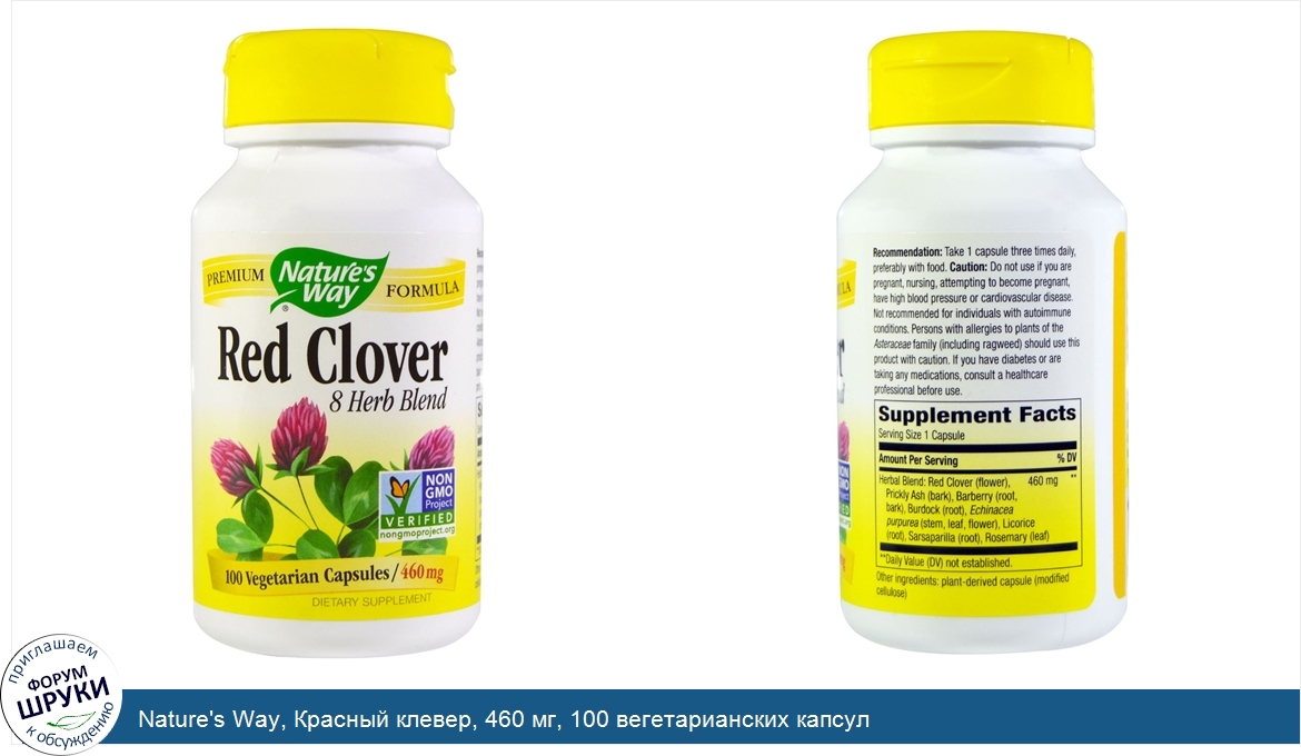 Nature's Way, Красный клевер, 460 мг, 100 вегетарианских капсул