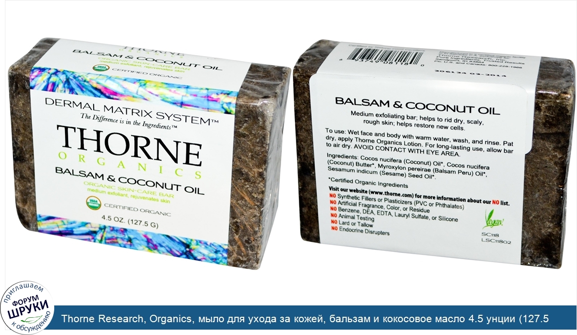 Друзья, если у вас есть отзыв/дополнение/комментарий/вопрос относительно Thorne Research, Organics, мыло для ухода за кожей, бальзам и кокосовое масло 4.5 унции (127.5 г) - напишите его ответом в эту тему (это будет полезно всему сообществу в целом и вам в отдельности).