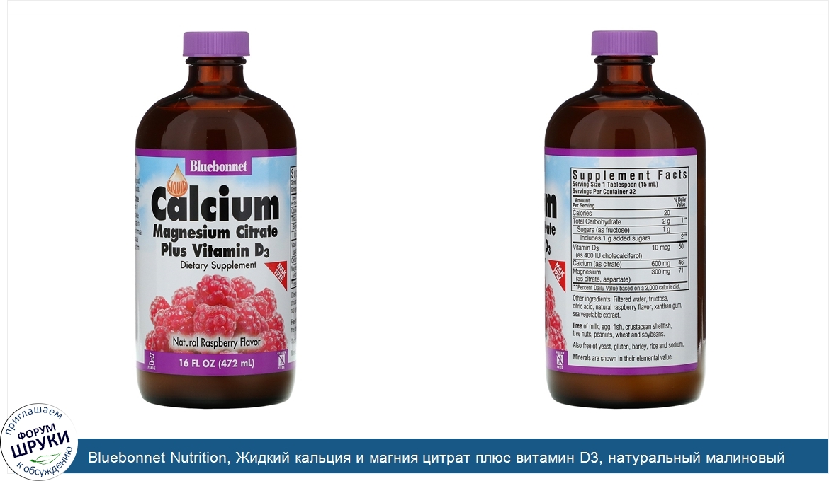 Bluebonnet Nutrition, Жидкий кальция и магния цитрат плюс витамин D3, натуральный малиновый вкус, 16 жидких унций (472 мл)