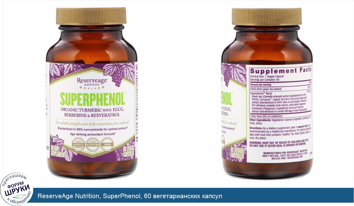 ReserveAge Nutrition, SuperPhenol, 60 вегетарианских капсул
