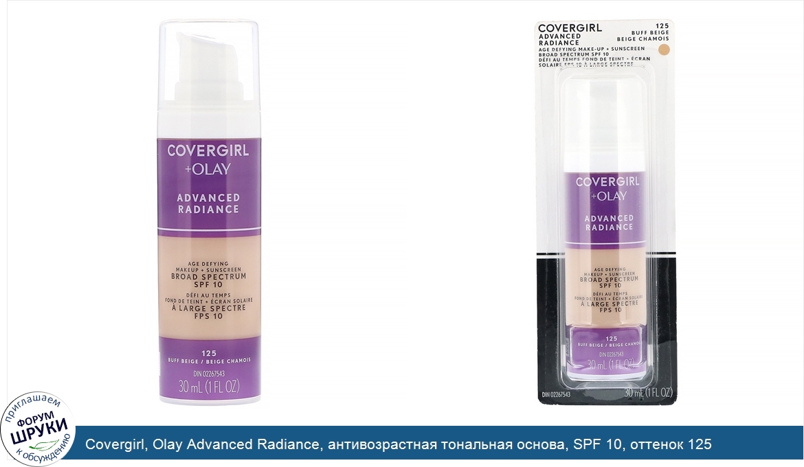 Covergirl, Olay Advanced Radiance, антивозрастная тональная основа, SPF 10, оттенок 125 «Желтовато-бежевый», 30мл (1жидк.унция)