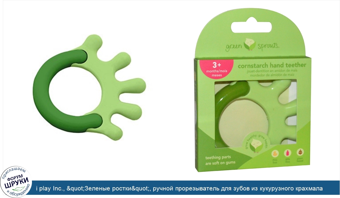 Друзья, если у вас есть отзыв/дополнение/комментарий/вопрос относительно i play Inc., &quot;Зеленые ростки&quot;, ручной прорезыватель для зубов из кукурузного крахмала, зеленый, 1 штука - напишите его ответом в эту тему (это будет полезно всему сообществу в целом и вам в отдельности).