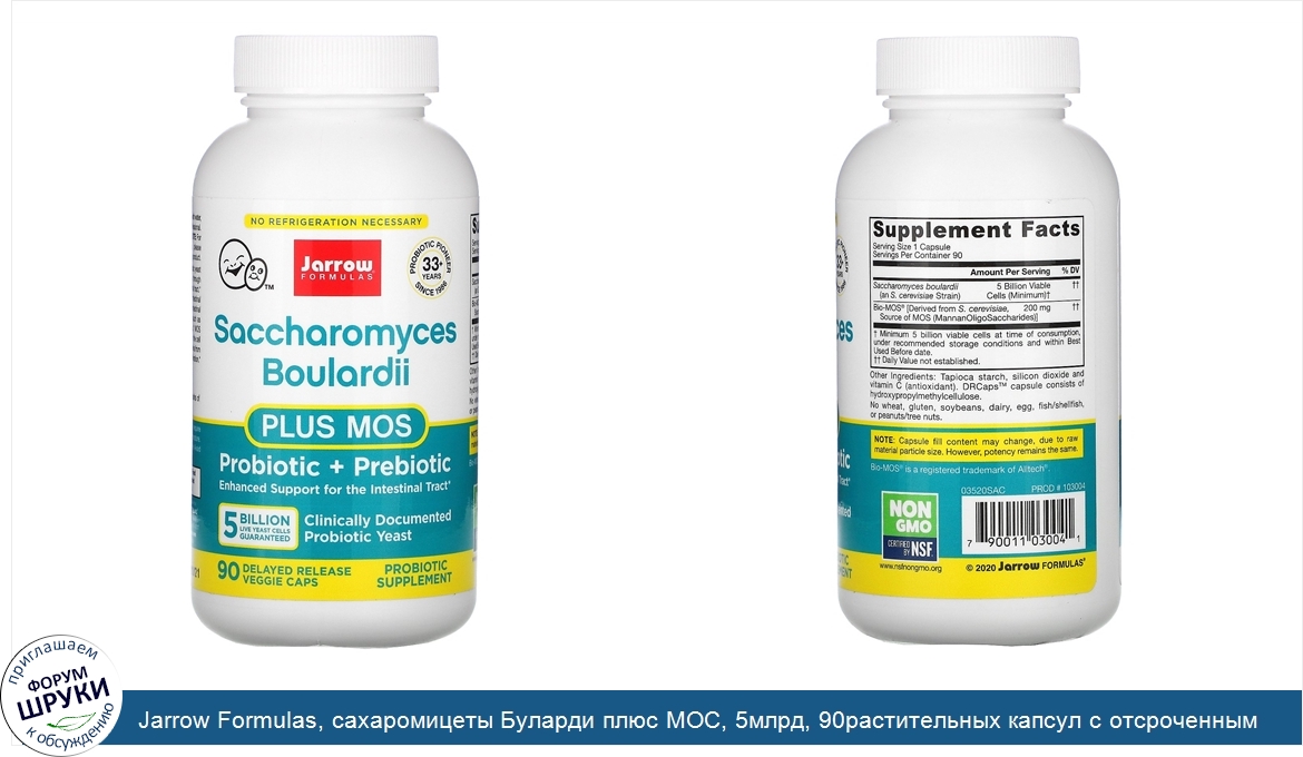 Jarrow Formulas, сахаромицеты Буларди плюс МОС, 5млрд, 90растительных капсул с отсроченным высвобождением