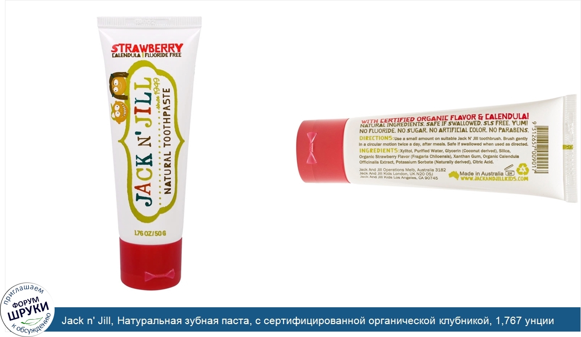 Друзья, если у вас есть отзыв/дополнение/комментарий/вопрос относительно Jack n' Jill, Натуральная зубная паста, с сертифицированной органической клубникой, 1,767 унции (50 г) - напишите его ответом в эту тему (это будет полезно всему сообществу в целом и вам в отдельности).
