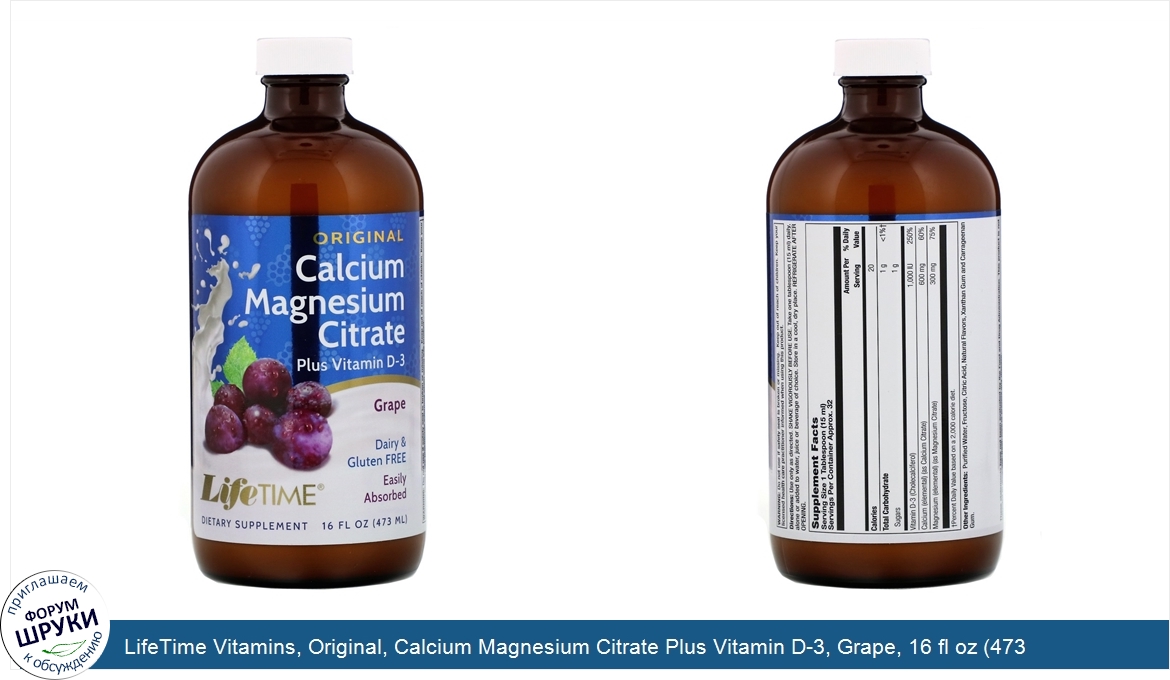 Друзья, если у вас есть отзыв/дополнение/комментарий/вопрос относительно LifeTime Vitamins, Original, Calcium Magnesium Citrate Plus Vitamin D-3, Grape, 16 fl oz (473 ml) - напишите его ответом в эту тему (это будет полезно всему сообществу в целом и вам в отдельности).