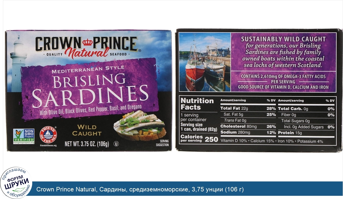 Друзья, если у вас есть отзыв/дополнение/комментарий/вопрос относительно Crown Prince Natural, Сардины, средиземноморские, 3,75 унции (106 г) - напишите его ответом в эту тему (это будет полезно всему сообществу в целом и вам в отдельности).