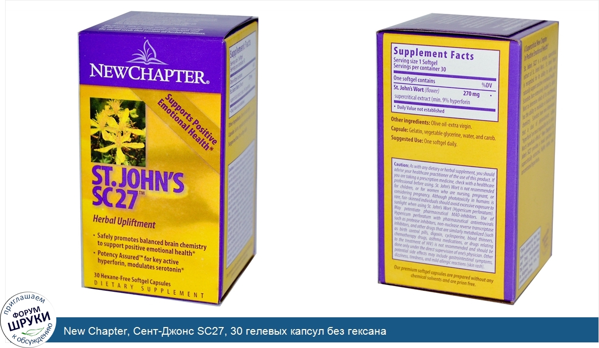 ru New Chapter, Сент-Джонс SC27, 30 гелевых капсул без гексана