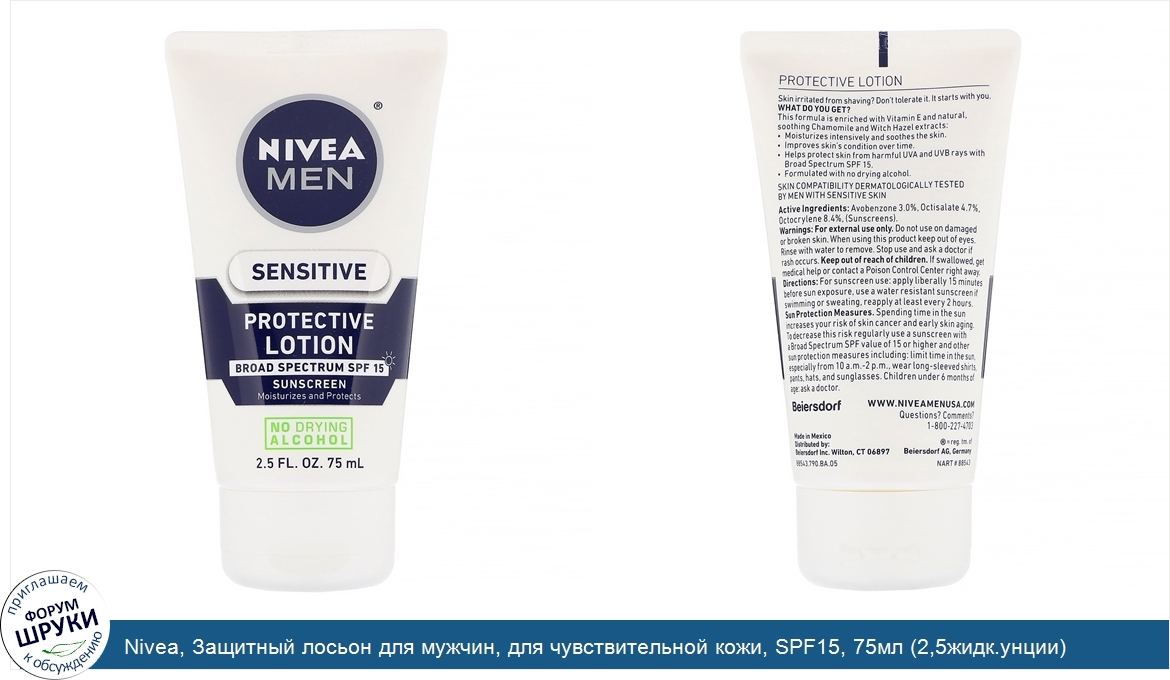 Друзья, если у вас есть отзыв/дополнение/комментарий/вопрос относительно Nivea, Защитный лосьон для мужчин, для чувствительной кожи, SPF15, 75мл (2,5жидк.унции) - напишите его ответом в эту тему (это будет полезно всему сообществу в целом и вам в отдельности).