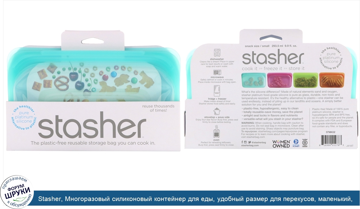 Друзья, если у вас есть отзыв/дополнение/комментарий/вопрос относительно Stasher, Многоразовый силиконовый контейнер для еды, удобный размер для перекусов, маленький, голубой, 293,5мл (9,9жидк.унции) - напишите его ответом в эту тему (это будет полезно всему сообществу в целом и вам в отдельности).