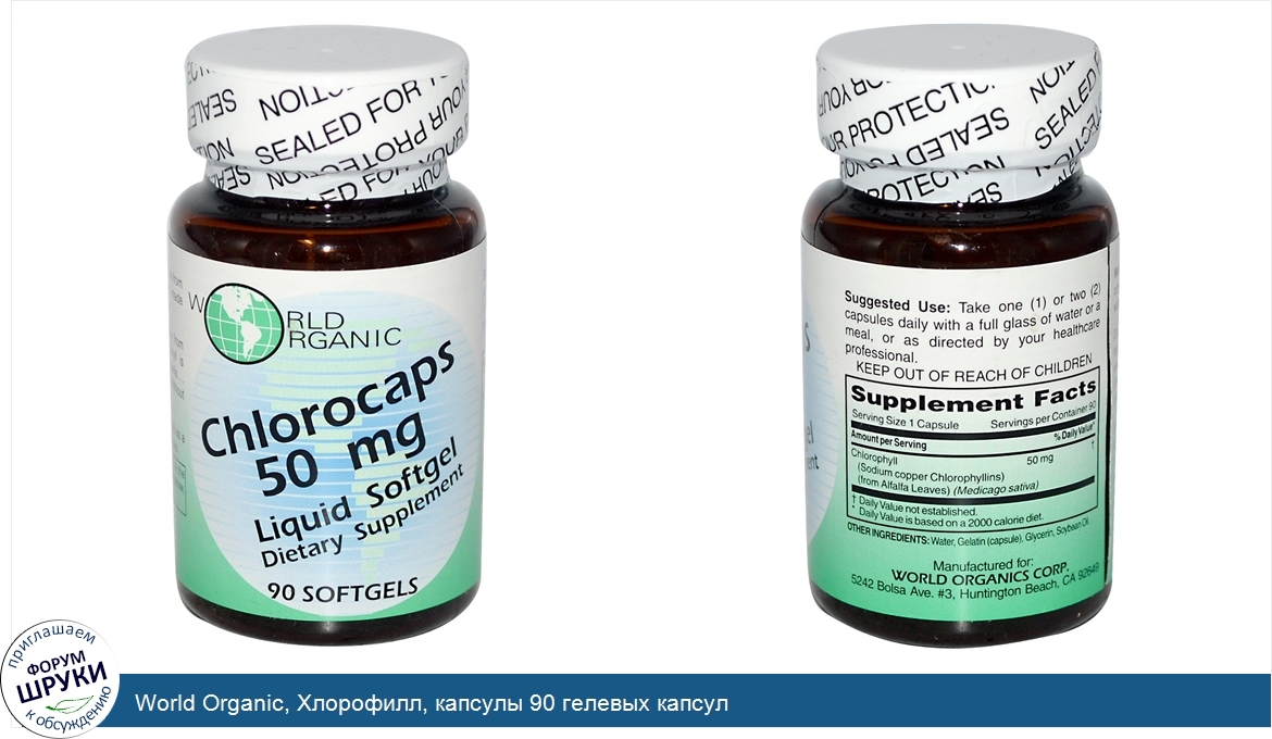 World Organic, Хлорофилл, капсулы 90 гелевых капсул