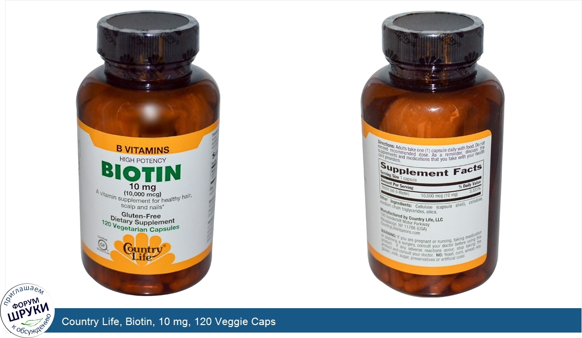 Country Life, Biotin, 10 mg, 120 Veggie Caps