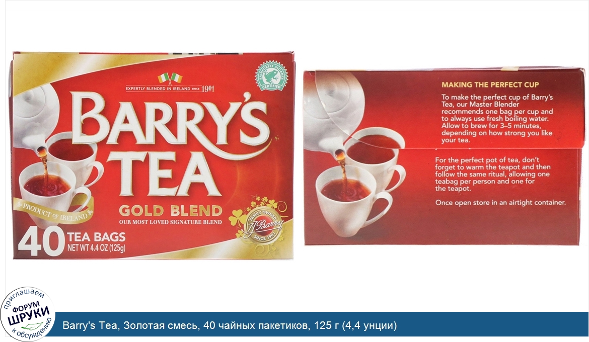 ru Barry's Tea, Золотая смесь, 40 чайных пакетиков, 125 г (4,4 унции)
