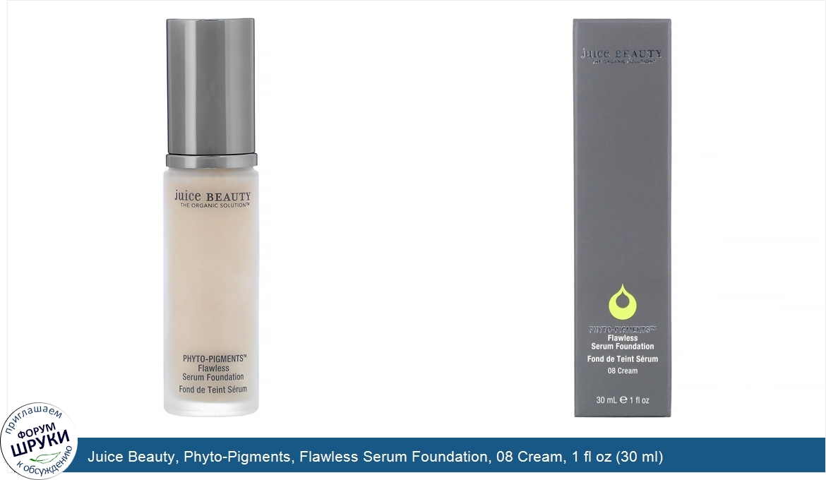 Juice Beauty, Phyto-Pigments, Flawless Serum Foundation, 08 Cream, 1 fl oz (30 ml)