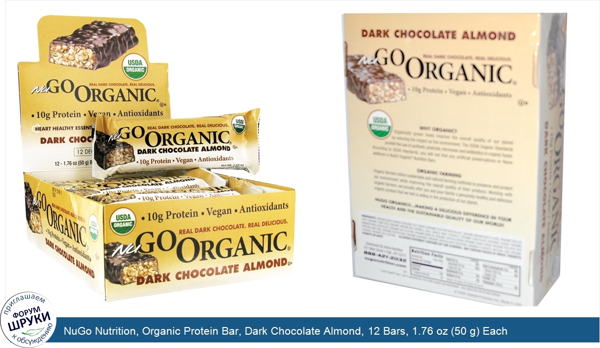 ru NuGo Nutrition, Organic Protein Bar, Dark Chocolate Almond, 12 Bars, 1.76 oz (50 g) Each