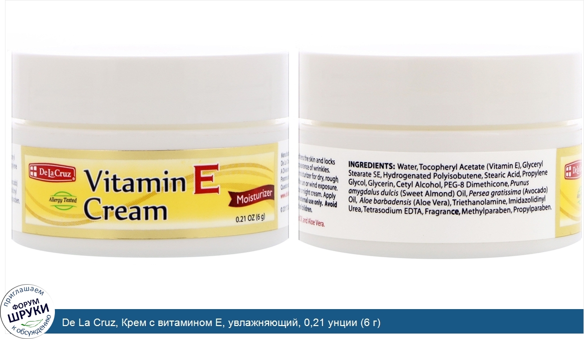 Друзья, если у вас есть отзыв/дополнение/комментарий/вопрос относительно De La Cruz, Крем с витамином E, увлажняющий, 0,21 унции (6 г) - напишите его ответом в эту тему (это будет полезно всему сообществу в целом и вам в отдельности).