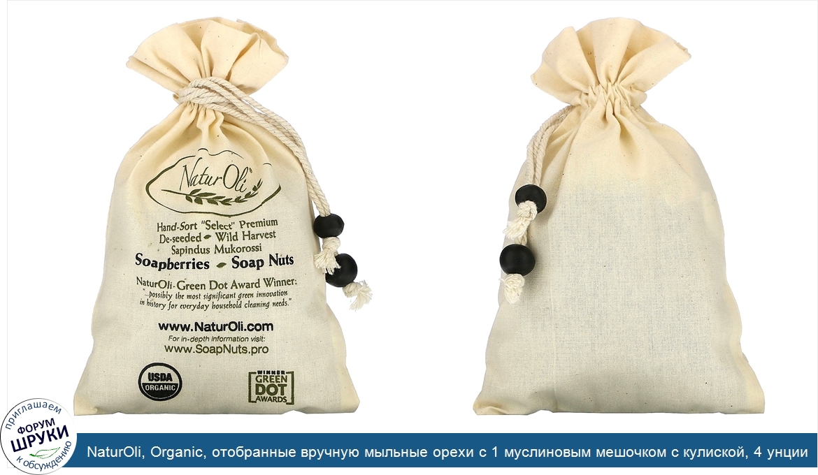 NaturOli, Organic, отобранные вручную мыльные орехи с 1 муслиновым мешочком с кулиской, 4 унции