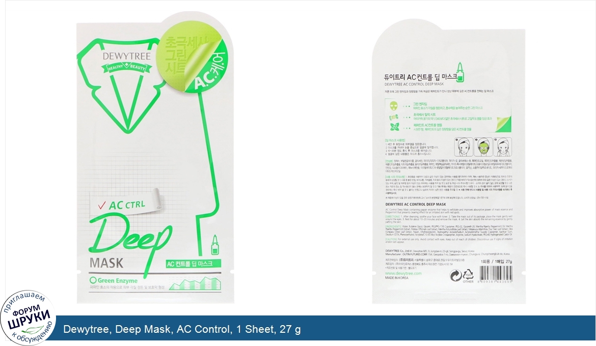 Dewytree, Deep Mask, AC Control, 1 Sheet, 27 g