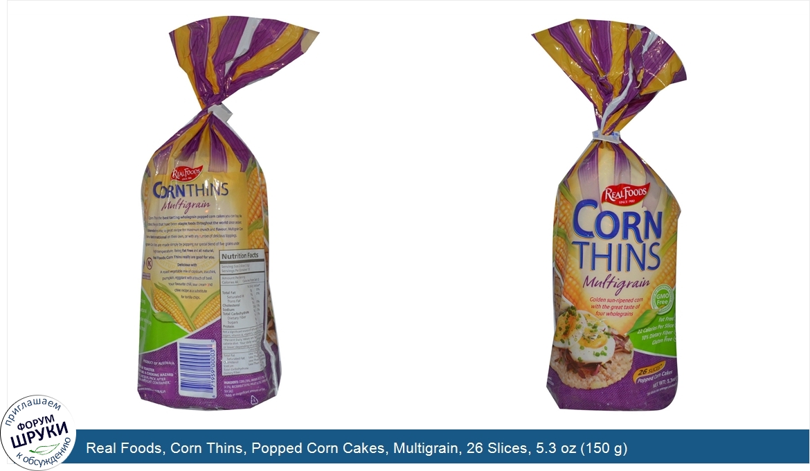 Real Foods, Corn Thins, Popped Corn Cakes, Multigrain, 26 Slices, 5.3 oz (150 g)