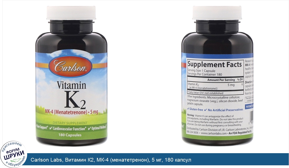 Друзья, если у вас есть отзыв/дополнение/комментарий/вопрос относительно Carlson Labs, Витамин К2, МК-4 (менатетренон), 5 мг, 180 капсул - напишите его ответом в эту тему (это будет полезно всему сообществу в целом и вам в отдельности).