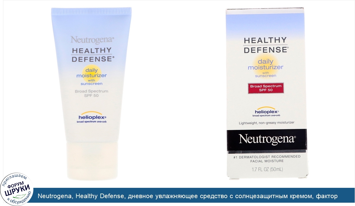 Neutrogena, Healthy Defense, дневное увлажняющее средство с солнцезащитным кремом, фактор защиты от солнца 50 широкого спектра действия, 1,7 ж. унц. (50 мл)