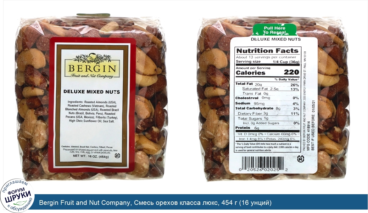 Друзья, если у вас есть отзыв/дополнение/комментарий/вопрос относительно Bergin Fruit and Nut Company, Смесь орехов класса люкс, 454 г (16 унций) - напишите его ответом в эту тему (это будет полезно всему сообществу в целом и вам в отдельности).