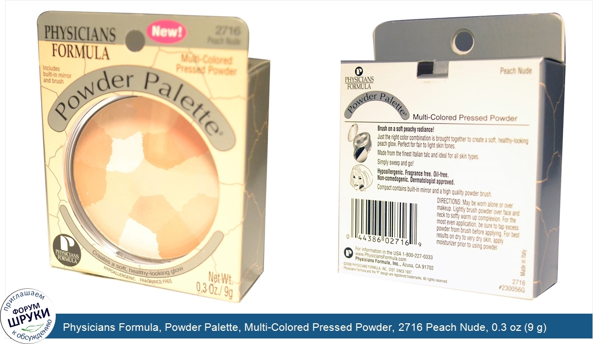 Друзья, если у вас есть отзыв/дополнение/комментарий/вопрос относительно Physicians Formula, Powder Palette, Multi-Colored Pressed Powder, 2716 Peach Nude, 0.3 oz (9 g) - напишите его ответом в эту тему (это будет полезно всему сообществу в целом и вам в отдельности).
