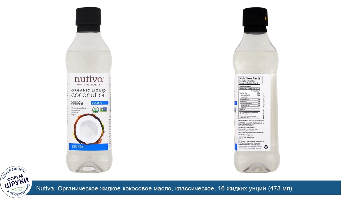 Друзья, если у вас есть отзыв/дополнение/комментарий/вопрос относительно Nutiva, Органическое жидкое кокосовое масло, классическое, 16 жидких унций (473 мл) - напишите его ответом в эту тему (это будет полезно всему сообществу в целом и вам в отдельности).
